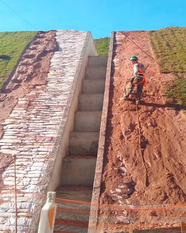 O serviço de RIP-RAP com solo-cimento consiste na aplicação de uma camada de pedras (rachão ou pedra de mão), assentadas sobre uma base estabilizada com solo-cimento, com o objetivo de aumentar a resistência e durabilidade da estrutura de contenção e proteção contra erosão. Essa técnica é especialmente indicada para áreas com alto volume de escoamento de água, onde o reforço da base com cimento proporciona maior fixação das pedras e estabilidade da estrutura ao longo do tempo.
