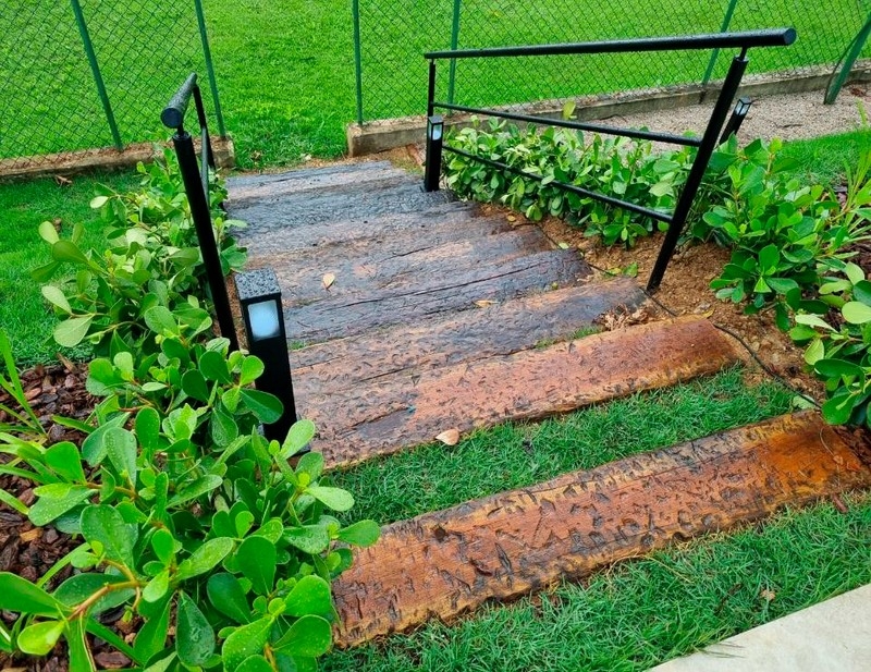 O madeiramento é realizado em locais abertos trazendo beleza e sofisticação para o local agregando o paisagismo do local.