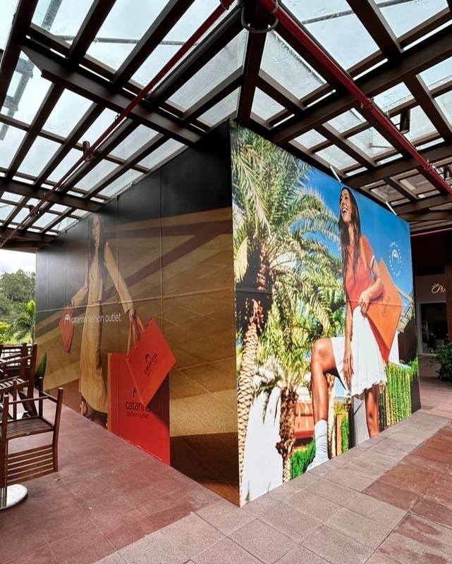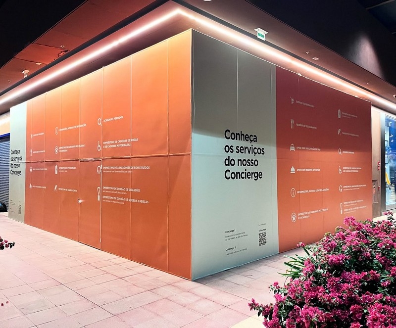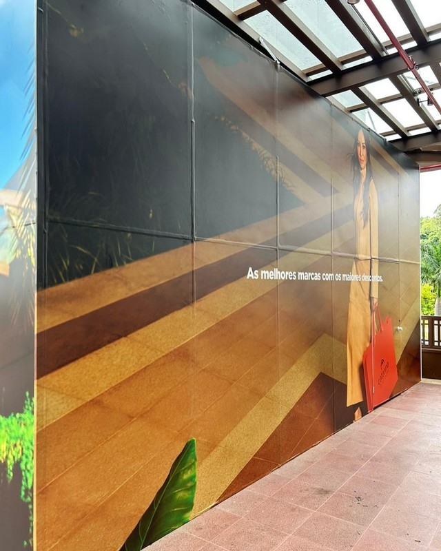 Tapume (Comunicação em Tapume): Impressão de grandes formatos e aplicação de adesivos em tapumes de obras, transformando um espaço de construção em um poderoso veículo de publicidade e informação.