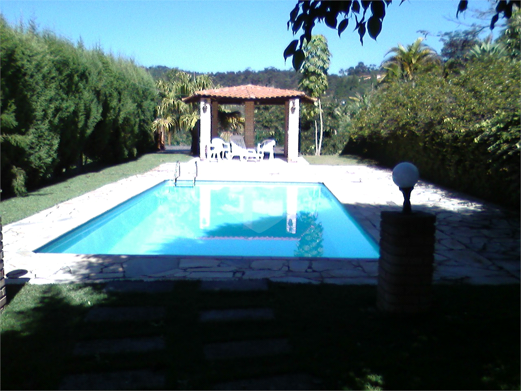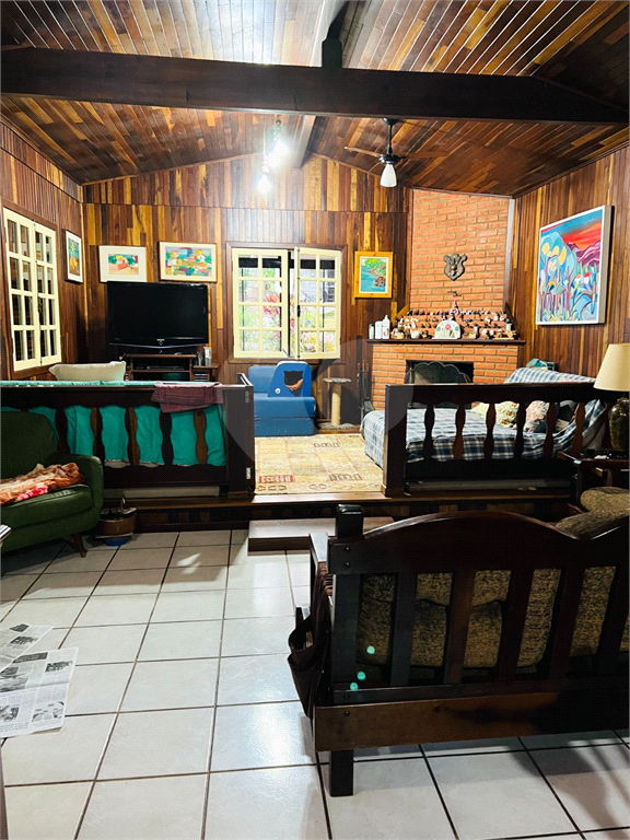 Imagine um condomínio fechado com segurança 24 horas e portaria com identificação biométrica, garantindo tranquilidade e privacidade. Dentro dele, há uma charmosa chácara com duas casas: a principal, toda feita em madeira imbuia, que é simplesmente linda, com três dormitórios (incluindo uma suíte), dois banheiros, uma sala de dois ambientes com lareira, cozinha, despensa e duas varandas perfeitas para relaxar. A segunda casa tem dois dormitórios, cozinha americana, sala e banheiro, ideal para hóspedes ou familiares.No espaço de lazer, você encontra uma churrasqueira com banheiro e despensa, uma piscina com quiosque e deck em madeira, além de um campo de futebol para diversão. Para os amantes da natureza, há um bosque com riacho e uma horta maravilhosa, repleta de pés de manga, abacate, laranja lima, limão, jaca, banana e jabuticaba. É um lugar que combina conforto, beleza natural e muitas opções de lazer!Toda asfaltada tanto na chegada da chácara quanto no condomínio.15 minutos do centro de Araçariguama com todo o comercio a disposição.Aceita permuta de casa em São Roque, Alphaville ou Praia Grande.Agende sua visita!  REF:REO1059273