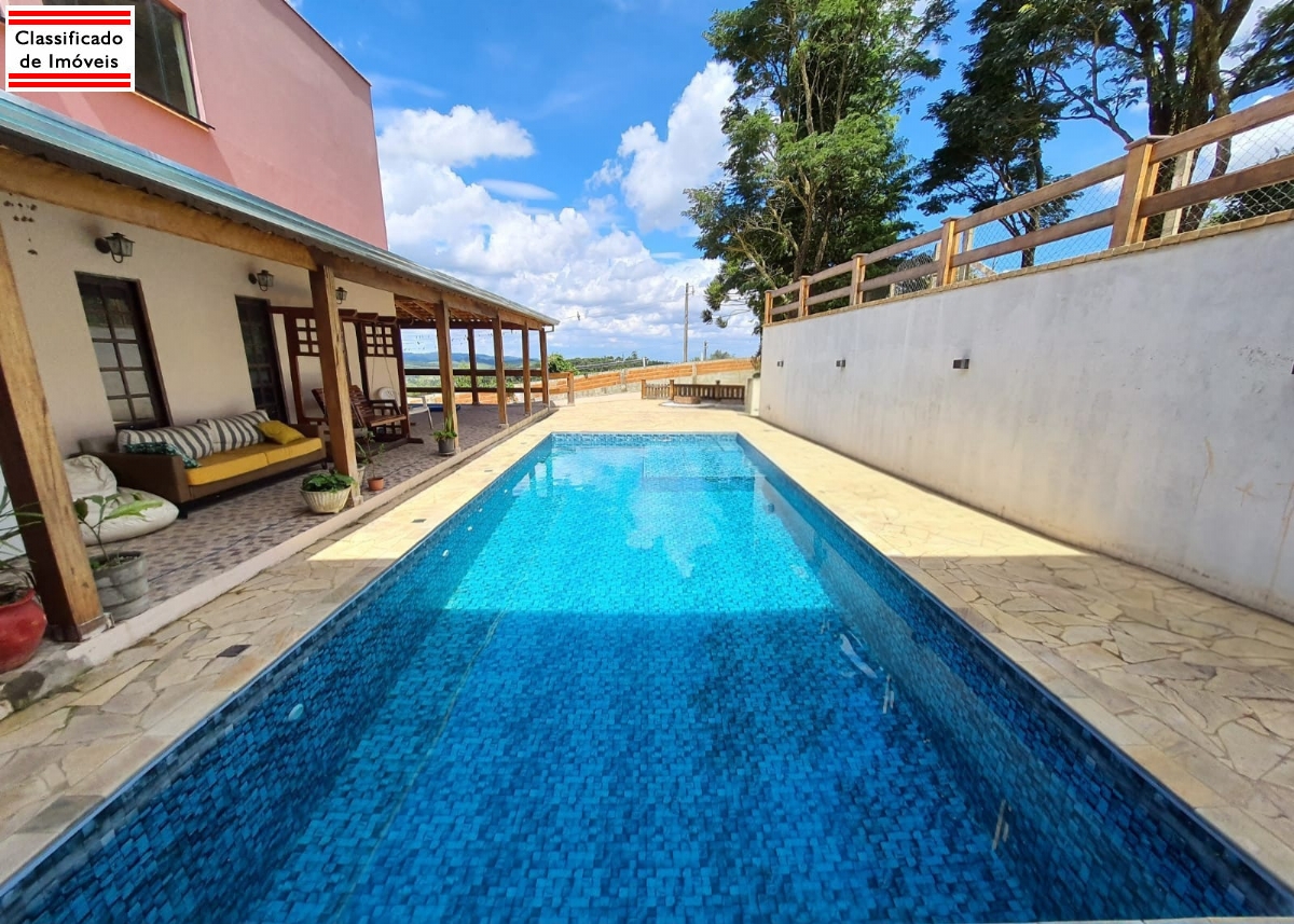 Excelente chácara na Vila Darcy com sobrado de três pisos. O 1º possui 100m: Sala de TV, banheiro e dois quartos sendo uma suíte com closet e banheira hidro para duas pessoas. No 2º piso temos a entrada principal, com 75m, sala de estar, banheiro e cozinha com móveis sob medida, forno elétrico, fogão de indução e pronta para lava-louças. O 3º piso possui 115m com banheiro e todo em plano aberto perfeito para salão de festas. A área gourmet conta com churrasqueira, balcão, banheiro, pia e pronta para fogão e geladeira. A piscina tem 10x4 com prainha de 2mx2m e 40cm de profundidade. Tem 1,40m na parte mais rasa e 1,80m na mais funda, sistema de aquecimento solar funcionando. A casa tem tb sistema de aquecimento solar para água com boiler para chuveiro, banheiro e torneira no banheiro da suíte e torneira da cozinha. Conta ainda com poço semi-artesiano, garagem com 3 vagas, canil e depósito. Oferece clima ameno de montanha com linda vista para o pôr do Sol no famosos Morro do Saboó.